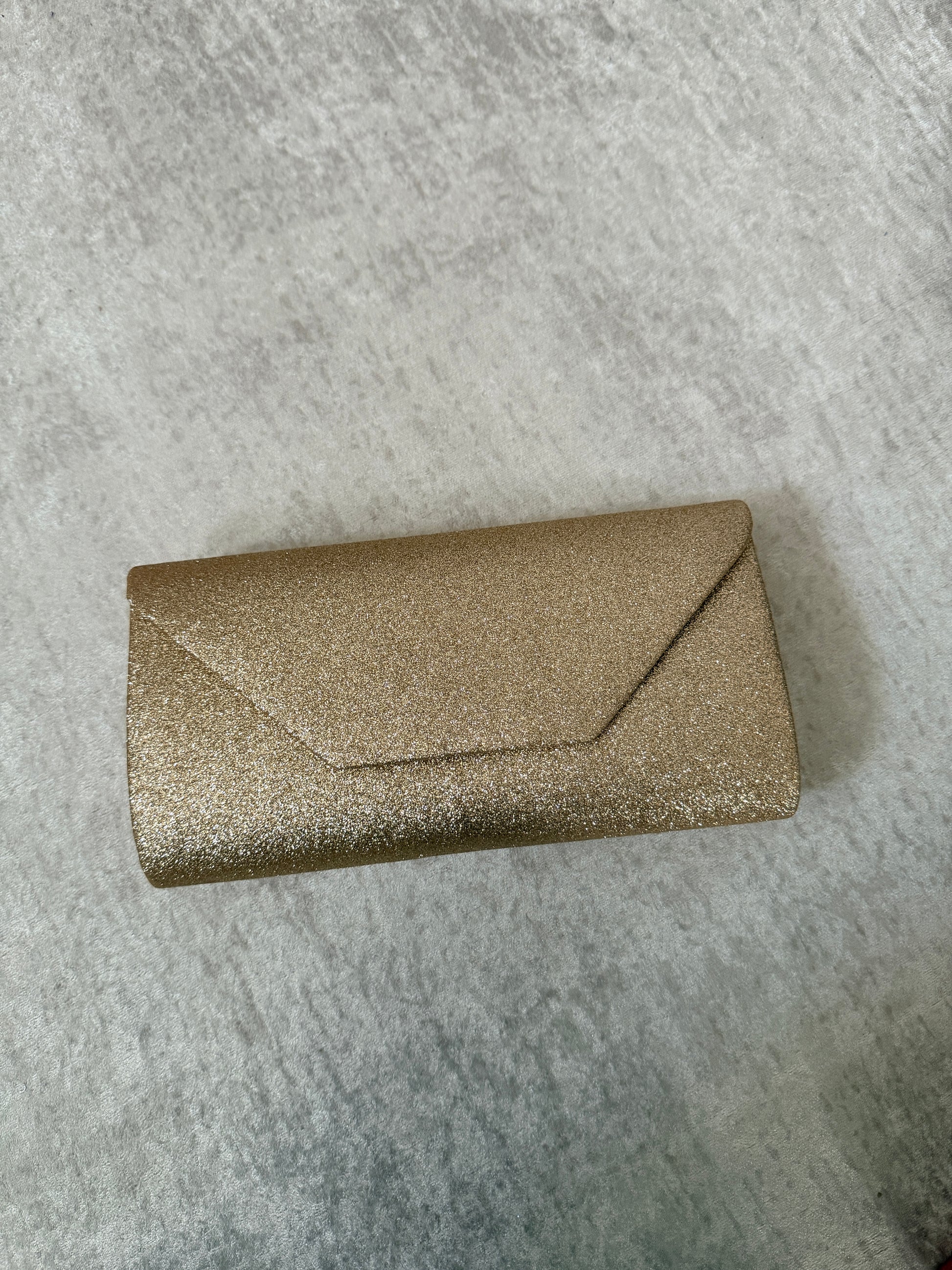 Raffinata e luminosa, questa borsa clutch è l’accessorio ideale per completare i tuoi look da sera o da cerimonia. Realizzata con una finitura glitterata che cattura la luce ad ogni movimento, unisce stile e semplicità in un design moderno ed essenziale.